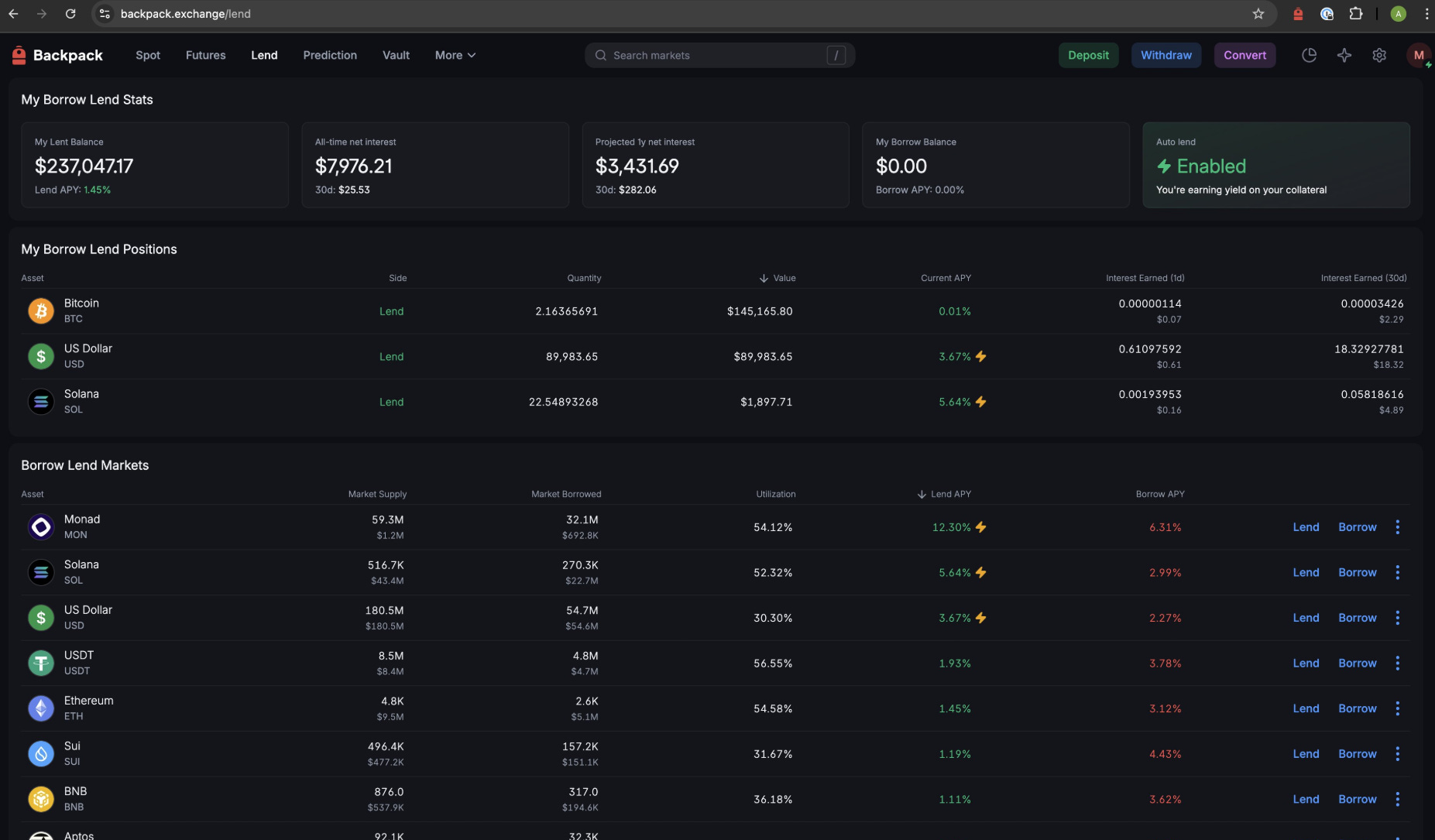With optional auto-lend, your idle balances automatically start earning while staying fully usable across the entire Backpack product suite