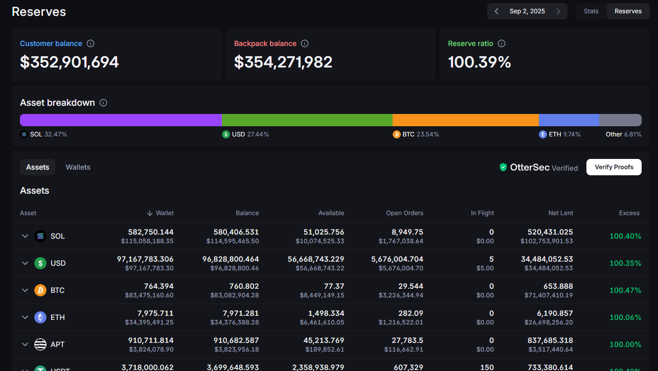 Backpack just teamed up with OtterSec to roll out PoRv2, a zero-knowledge system for fast and transparent solvency checks. Sounds like gibberish? Here’s the simple version: Backpack literally can’t fake their proof of reserves and to top it off, they publish it every day :